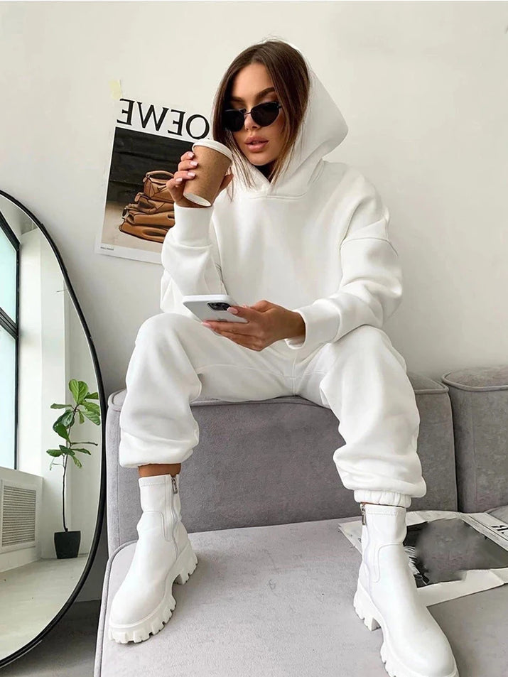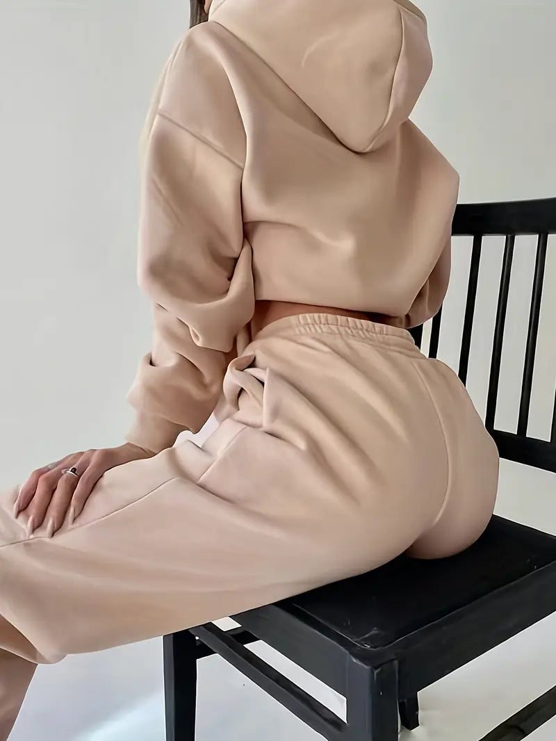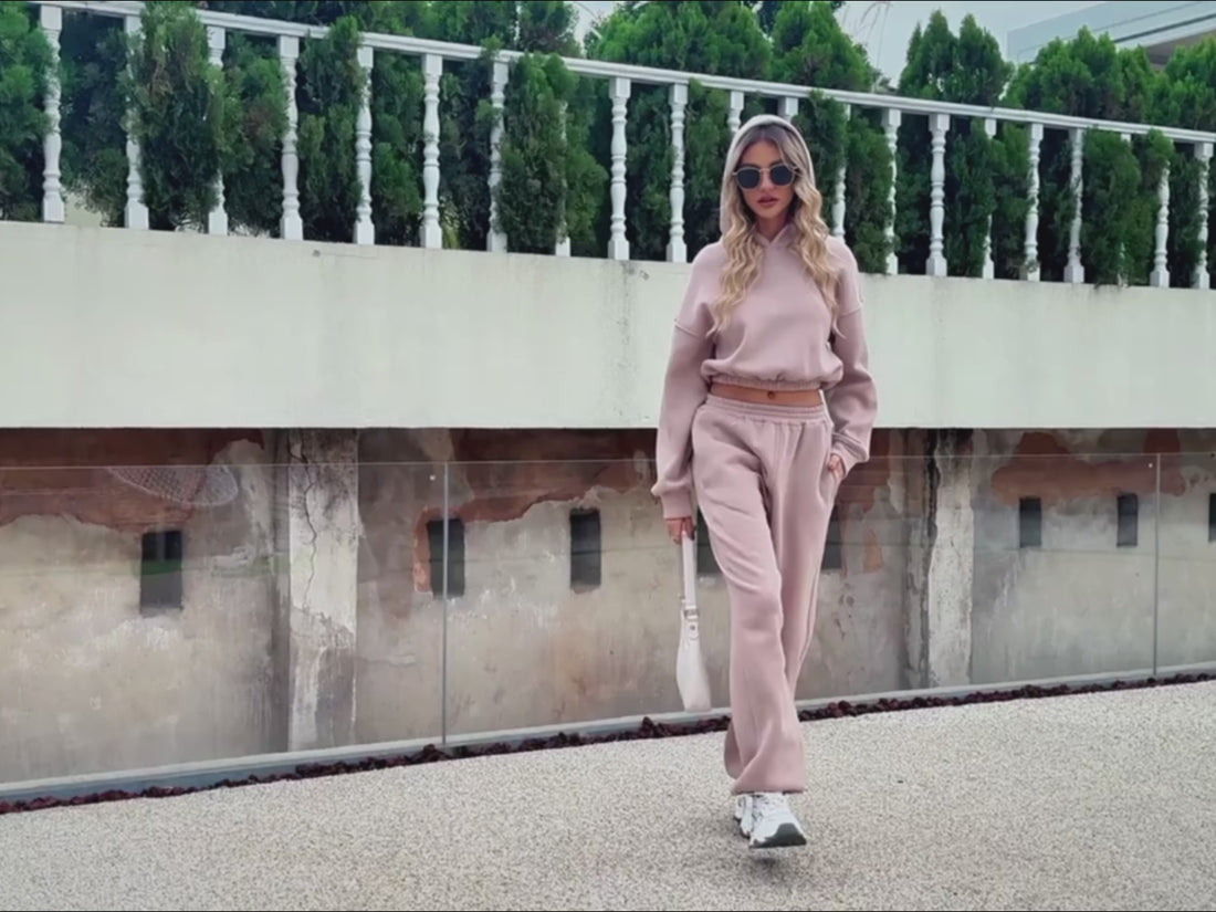 Deze losse, stijlvolle lounge-outfit is perfect voor ontspanning thuis of casual chique momenten buiten. Het zachte, knuffelige materiaal en de moderne snit zorgen voor een zorgeloze stijl en een comfortabele pasvorm.