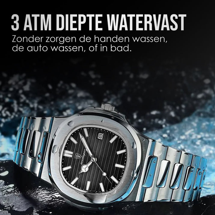 Antwoord 1: Ja, dit horloge is waterbestendig en gemaakt van premium roestvrij staal, waardoor het duurzaam en geschikt is voor een veeleisende levensstijl, perfect voor dagelijks gebruik.